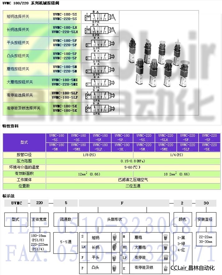 UVMC-180-5S,UVMC-180-3S,UVMC-180-5F,UVMC-180-5P,UVMC-220-5S,機械按鈕閥