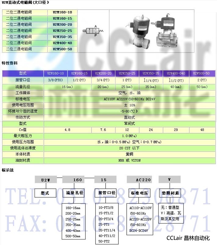 U2W160-10,U2W160-15,U2W200-20,U2W250-25,U2W350-35,U2W400-040,U2W500-50,二位二通電磁閥
