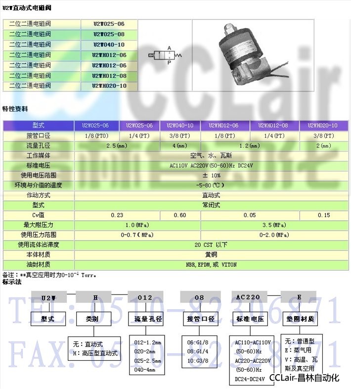 U2W025-06,U2W025-06,U2W040-10,U2WH012-06,U2WH012-08,U2WH020-10,二位二通電磁閥