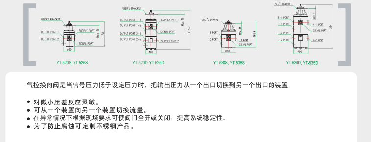您當(dāng)前的位置:首頁 » 供應(yīng)產(chǎn)品 » YT-520S21,YT-520S22,YT-520S23,YT-520D21,YT-520D22,氣控?fù)Q向閥