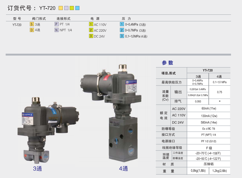 YT-720SP11,YT-720SP12,YT-720SP13,YT-720SP21,YT-720SP22,電磁閥