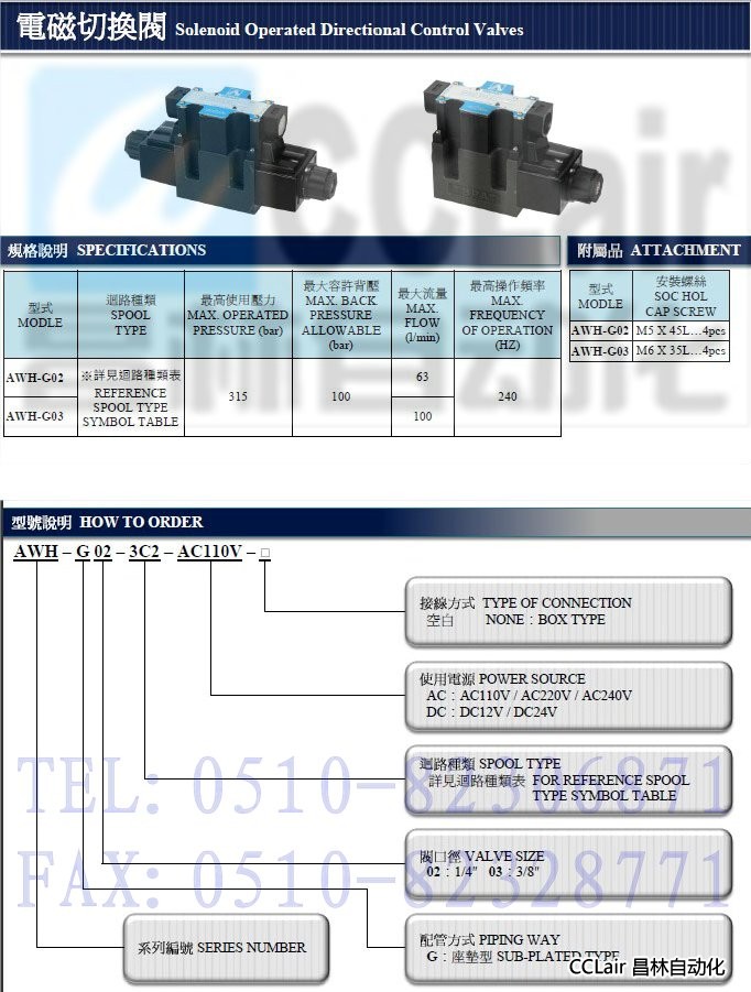 詳細(xì)信息 AWH-G02-3C2-AC110V,AWH-G03-3C2-AC110V,電磁切換閥