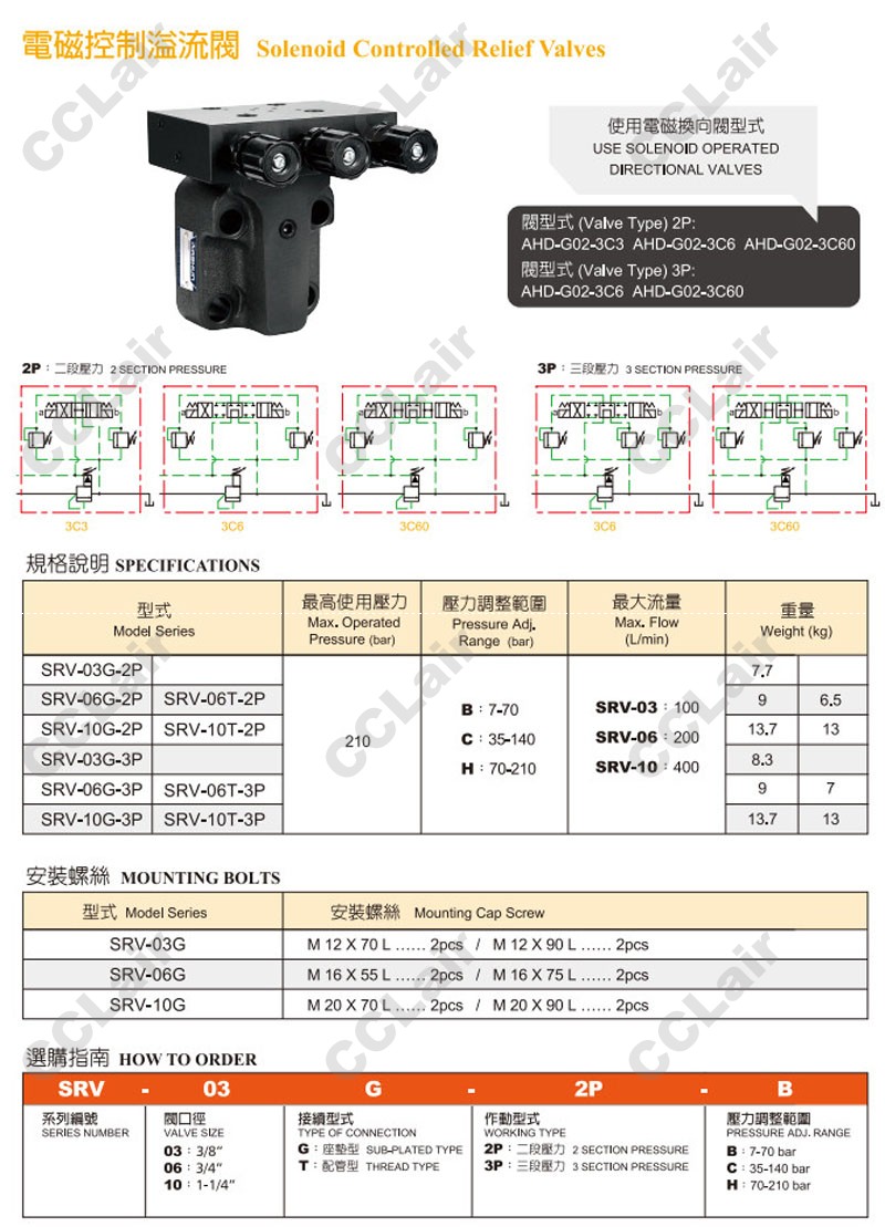 SRV-03G,SRV-06G,SRV-06T,SRV-10G,SRV-10T,SRV-10G-3P-H,SRV-06G-2P-B,SRV-10T-3P-C,ASHUN油順電磁控制溢流閥