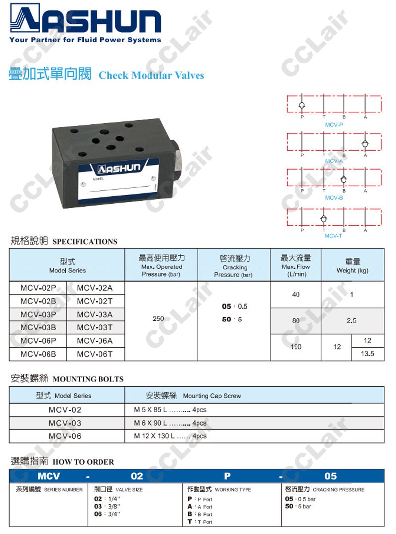 MCV-06P-05,MCV-06P-50,ASHUN油順 MCV-06A-05,MCV-06A-50,MCV-06B-05,MCV-06T-50,