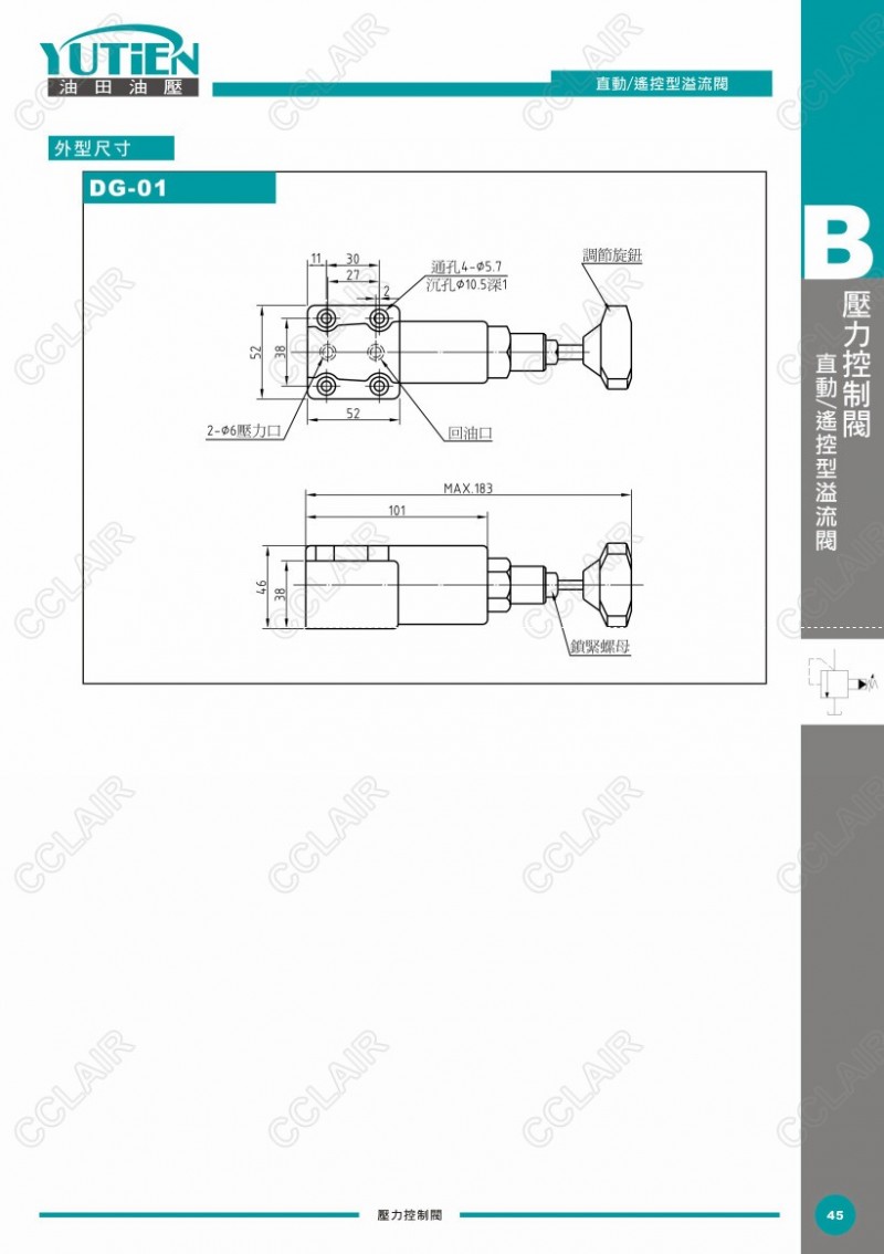 詳細信息 YUTIEN油田直動/遙控型溢流閥DG-01-1,DT-01-2,DG-02-1,DT-02-3