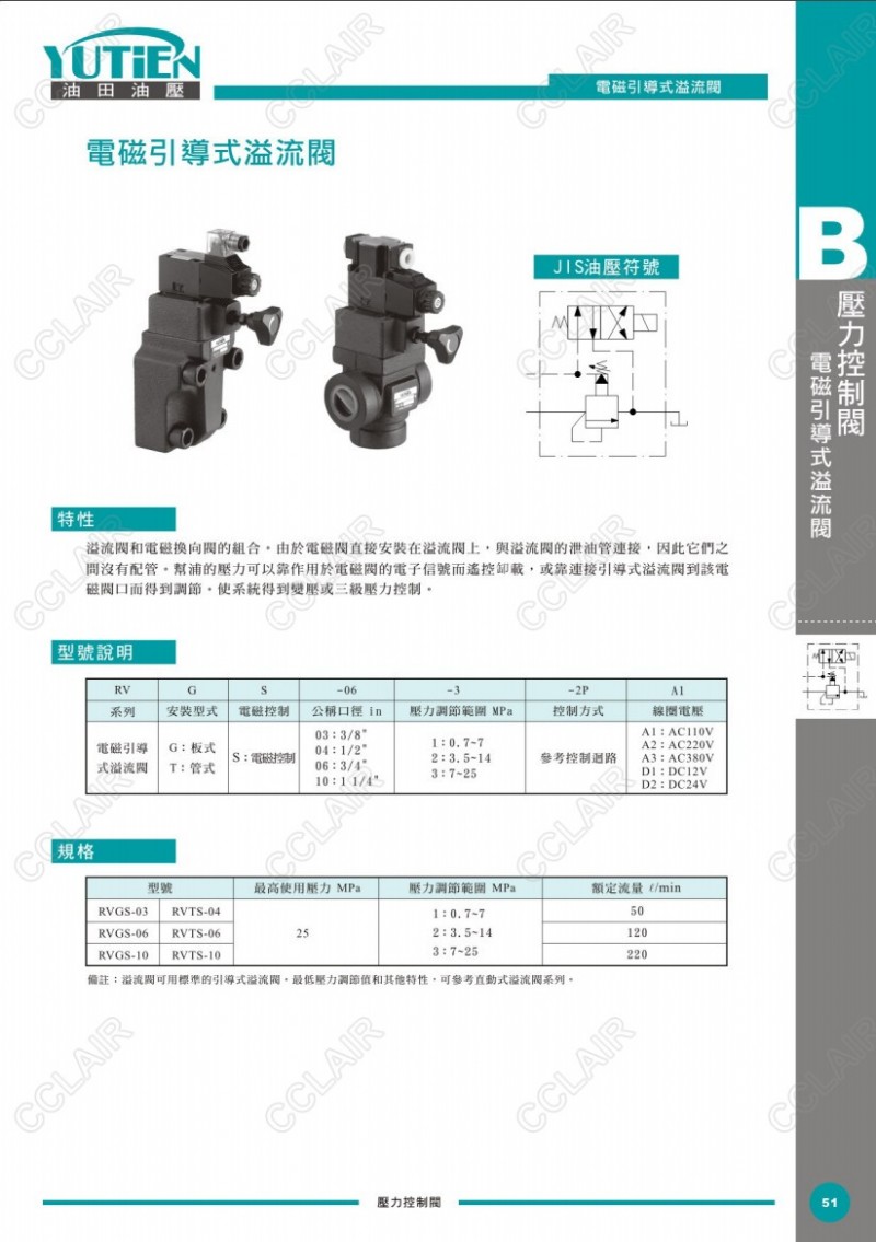 YUTIEN油田電磁引導(dǎo)式溢流閥RVGS-03,RVGS-06,RVGS-10,RVTS-03,RVTS-06,RVTS-10