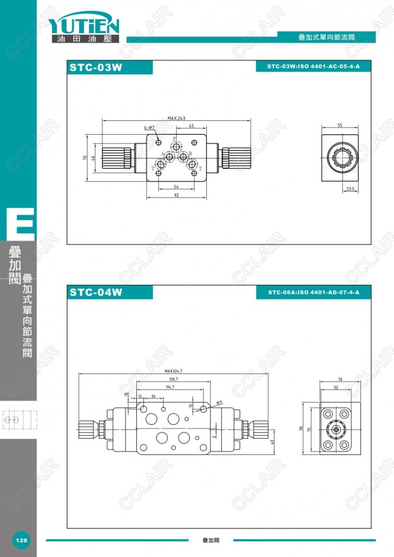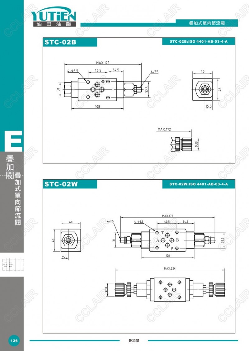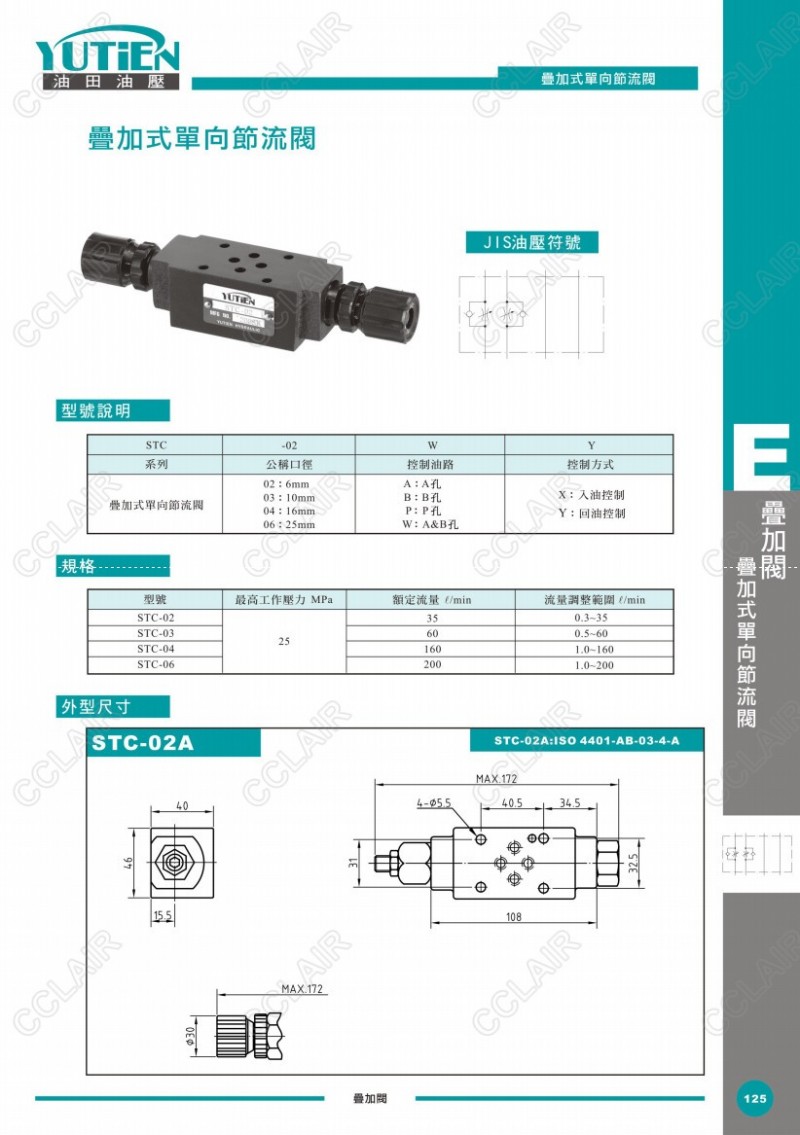 YUTIEN油田疊加式單向節(jié)流閥STC-02A,STC-03B,STC-04P,STC-06W