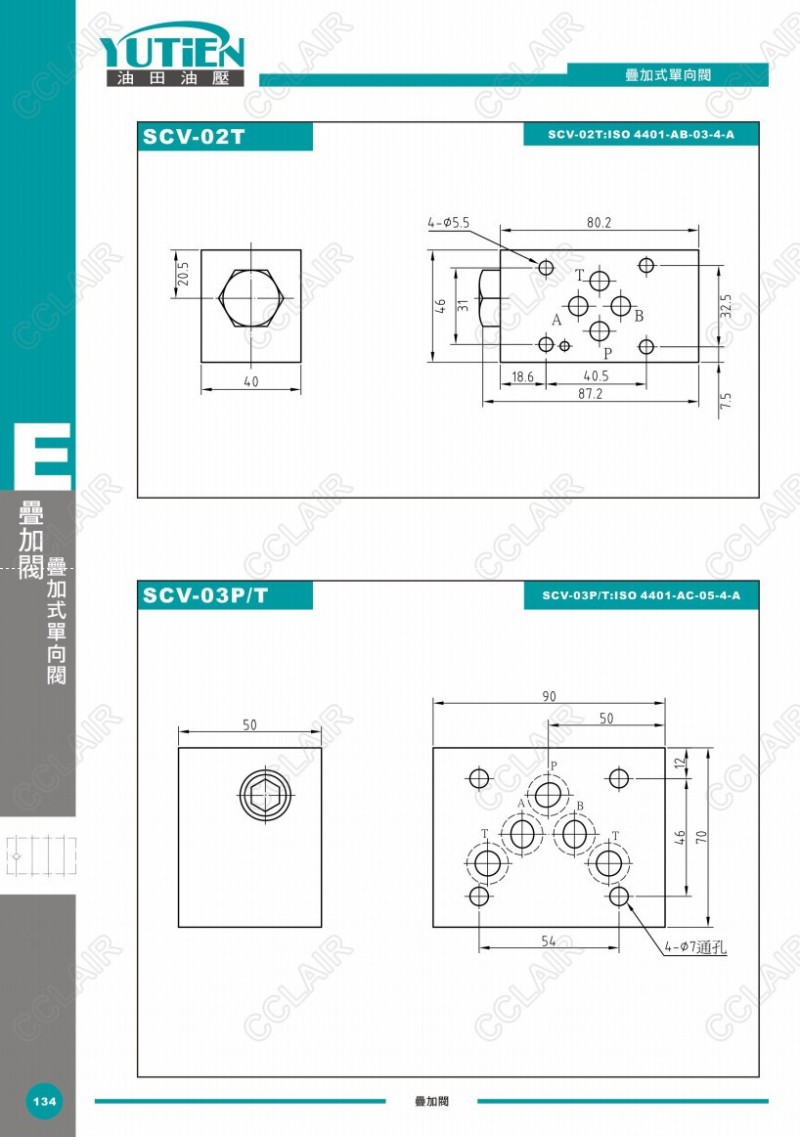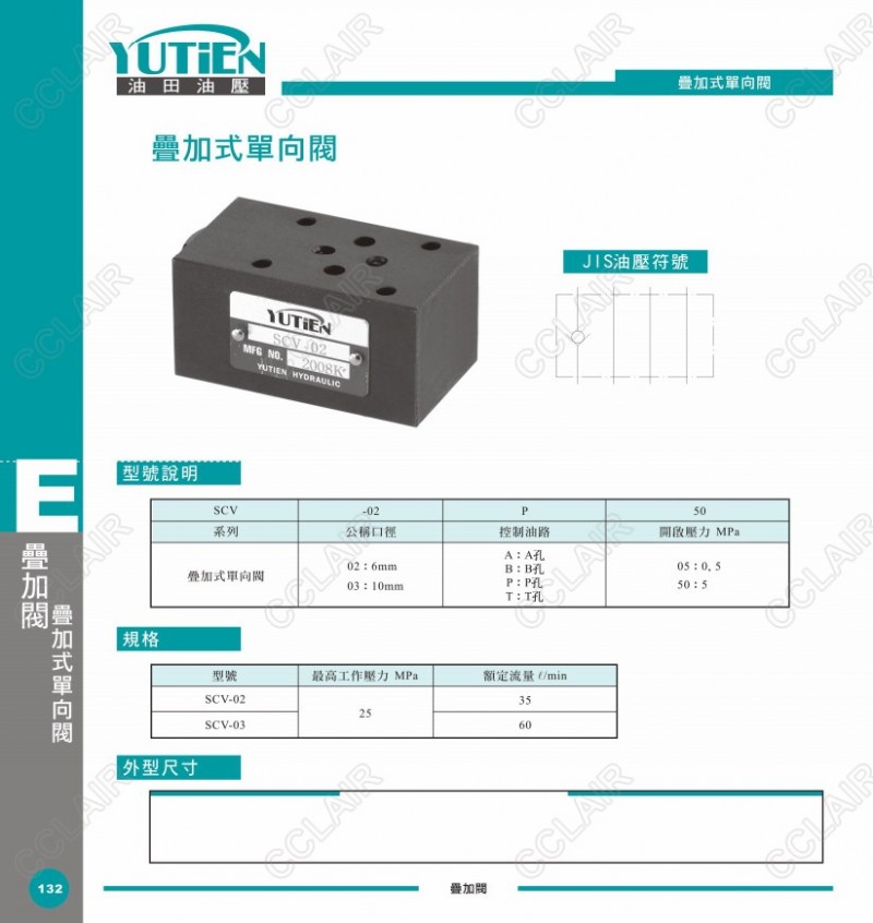 YUTIEN油田 疊加式單向閥SCV-02A,SCV-02B,SCV-02P,SCV-02T,SCV-03A,SCV-03B,SCV-03P,SCV-03T
