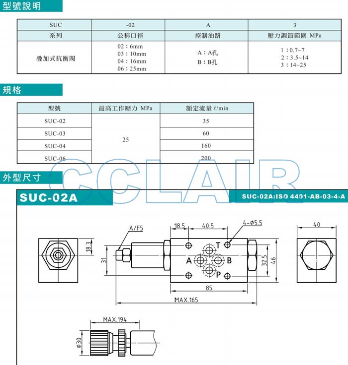 SUC-02A,SUC-03A,SUC-04A,SUC-06A,SUC-02B,SUC-03B,SUC-04B,疊加式抗衡閥