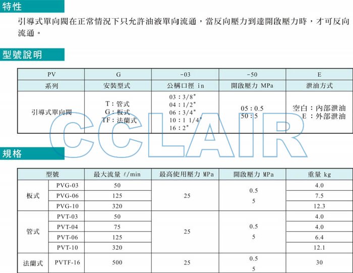 PVT-03,PVT-04,PVT-06,PVT-10,PVT-16,引導式單向閥