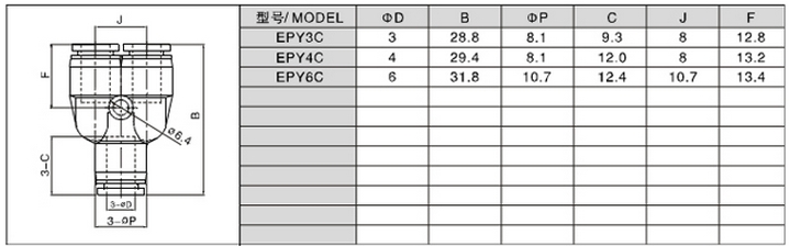 EPY3C,EPY4C,EPY6C,Y型三通接頭