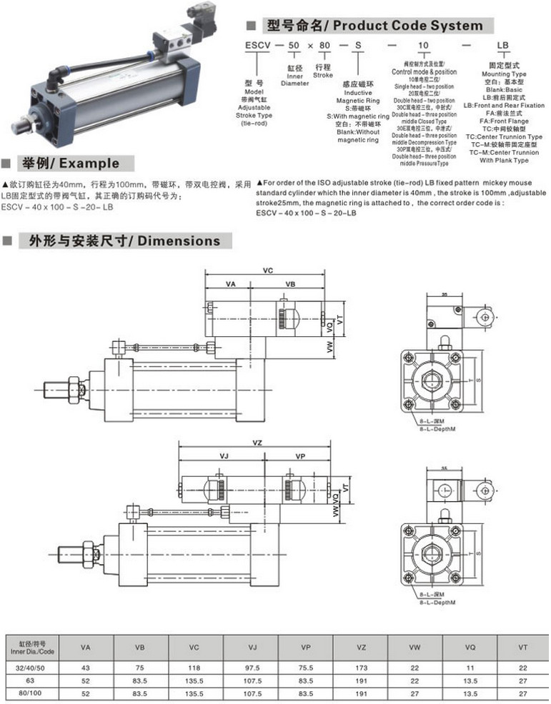 詳細(xì)信息 ESCV-32*80-S,ESCV-40*80-S,ESCV-50*100-S,ESCV-63*100-S,標(biāo)準(zhǔn)氣缸