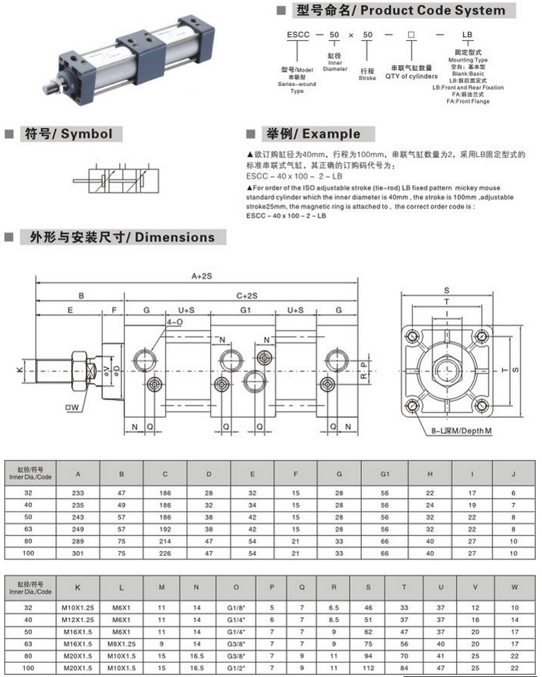 ESCC-32*50-S,ESCC-40*50-S,ESCC-50*50-S,ESCC-63*100-S,ESCC-80*100-S,標(biāo)準(zhǔn)氣缸
