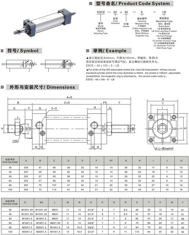 ESCE-32*50-S,ESCE-40*50-S,ESCE-50*50-S,ESCE-63*100-S,ESCE-80*100-S,標準氣缸