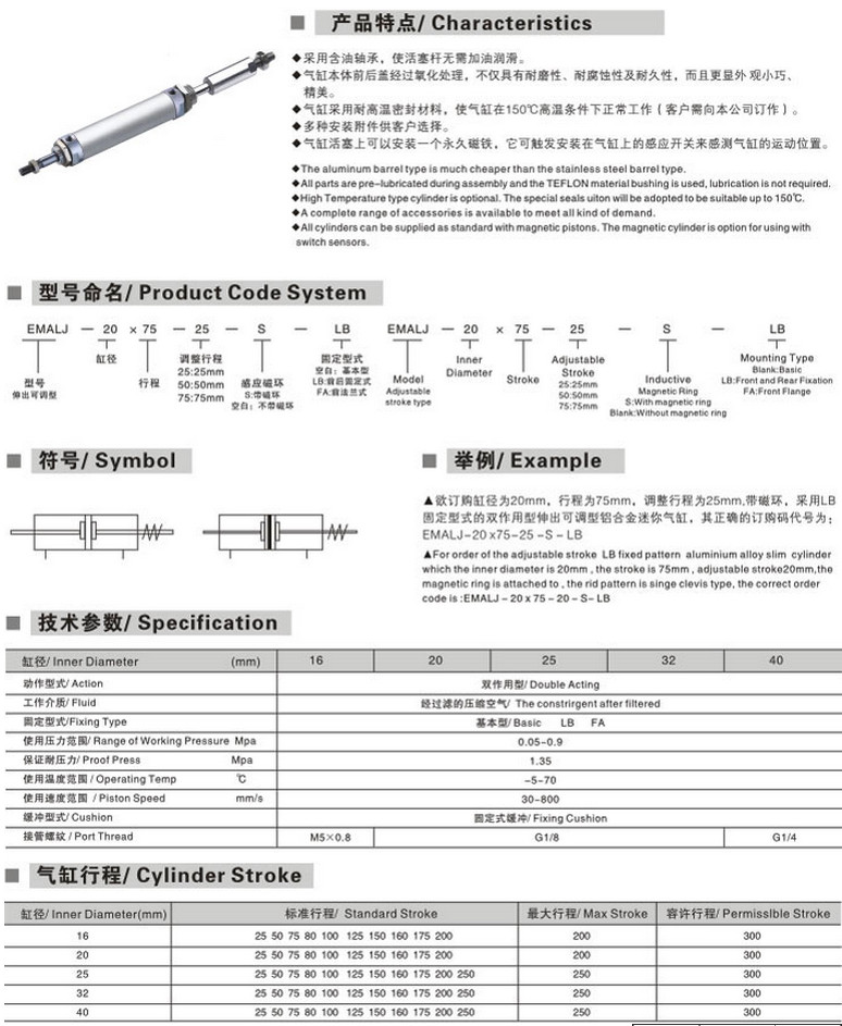 EMALJ-CM40*25,EMALJ-CM40*50,EMALJ-CM40*75,EMALJ-CM40*80,EMALJ-CM40*125,EMALJ-CM40*150,EMALJ-CM40*160,EMALJ-CM40*175,EMALJ-CM40*200,EMALJ-CM40*250,