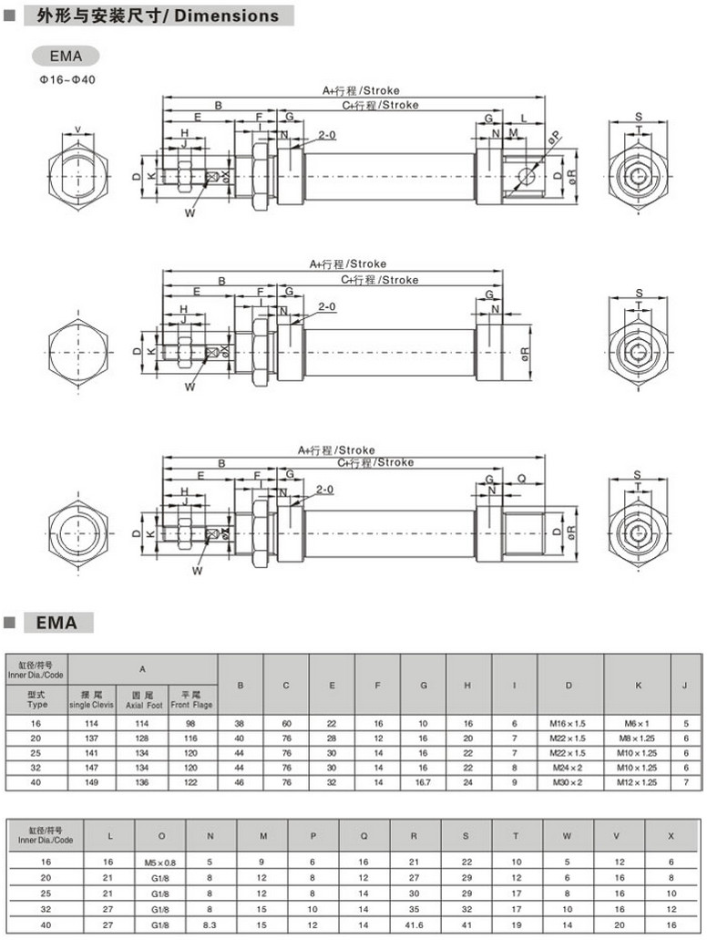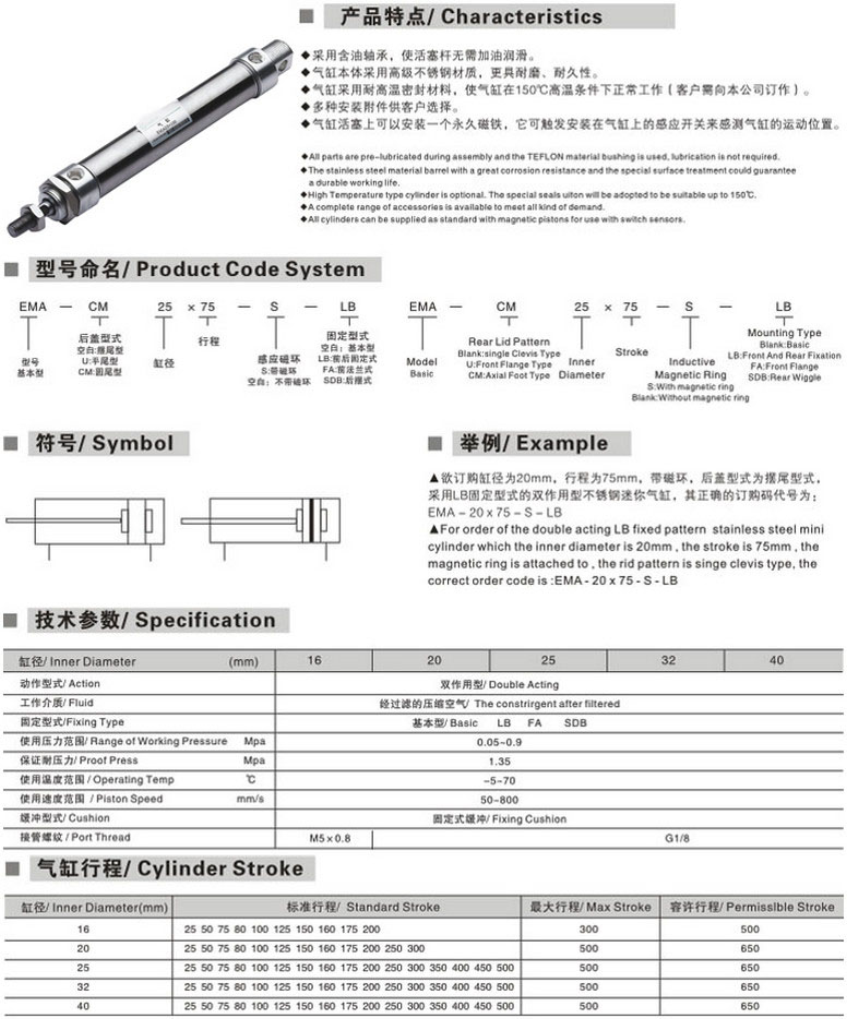 EMA-U16*25,EMA-U20*50,EMA-U32*80,EMA-CM25*50,EMA-CM40*100,