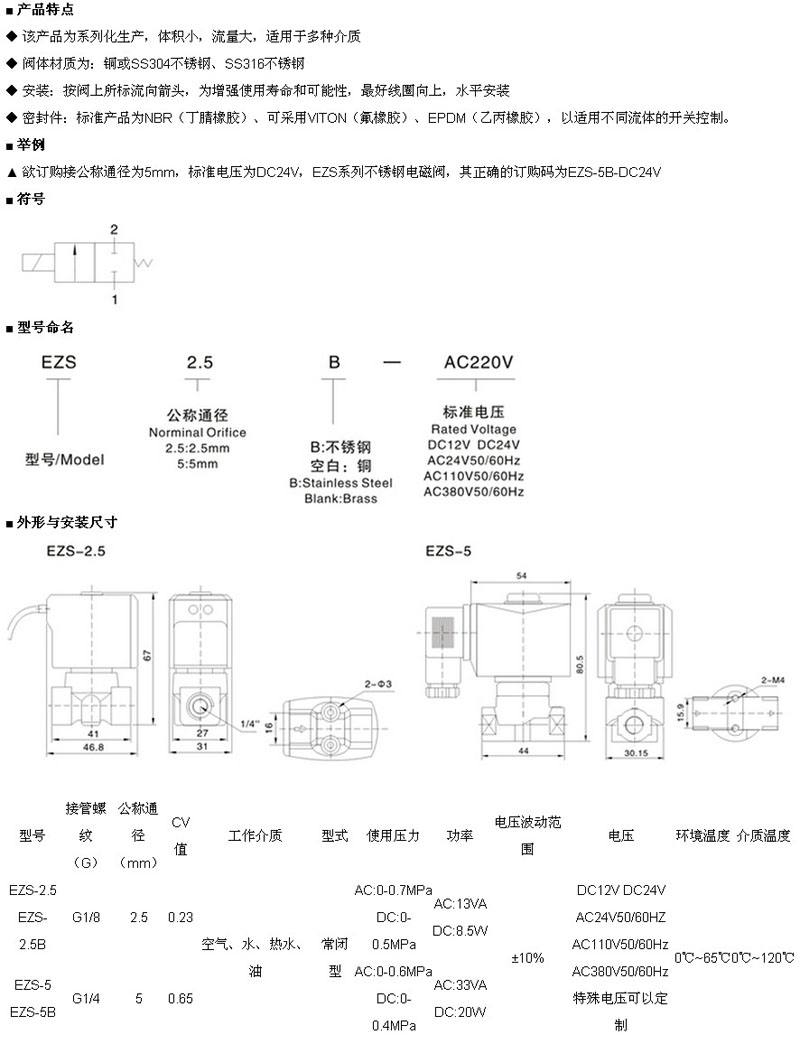 詳細(xì)信息 EZS-2.5,EZS-2.5B,EZS-5,EZS-5B,二位二通活塞式電磁閥
