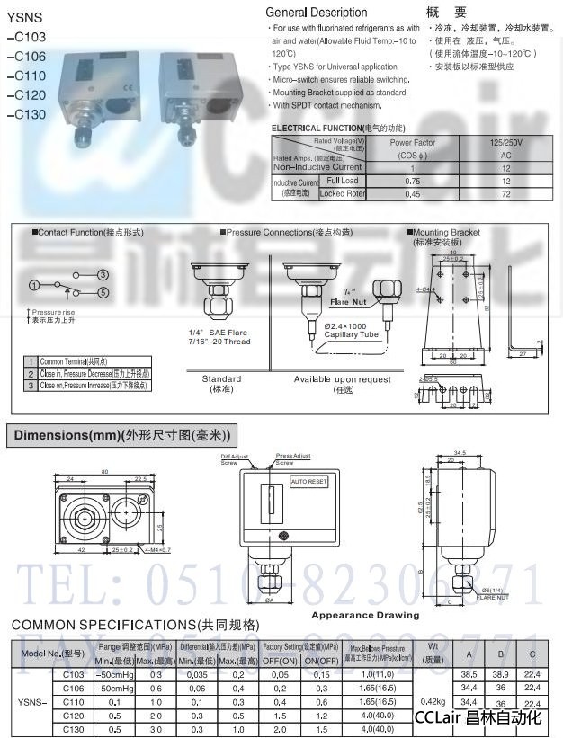 YSNS-C103,YSNS-C106,YSNS-C110,YSNS-C120,YSNS-C130,壓力開關(guān)