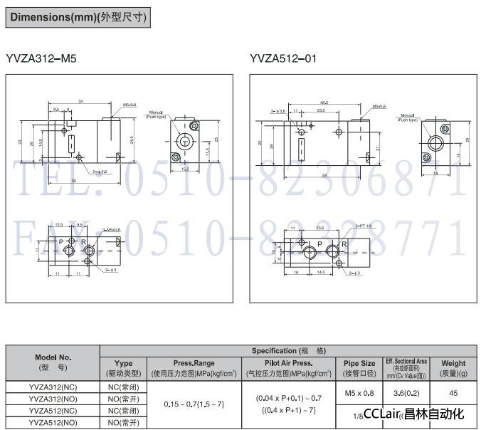 YVZA312(NC),YVZA312(NO),YVZA512(NC),YVZA512(NO),3通氣控閥