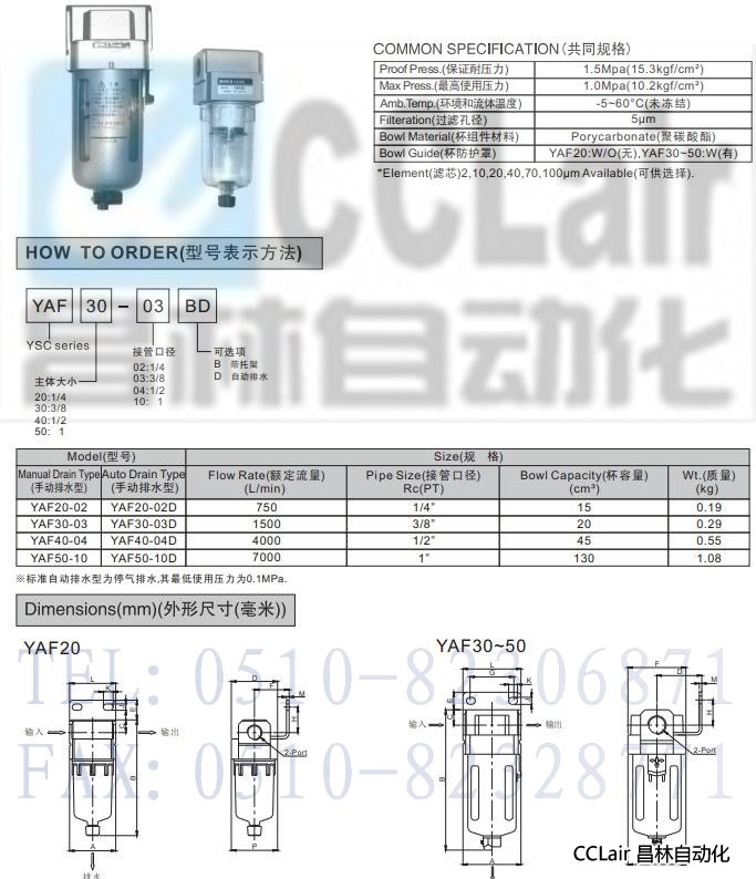 YAF20-02,YAF30-03,YAF40-04,YAF50-10,空氣過濾器