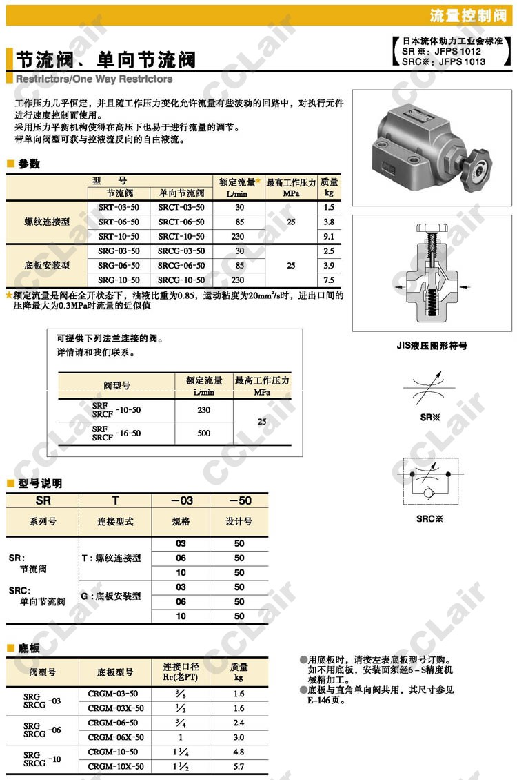 SRT-03-50,SRT-06-50,SRT-10-50,SRCT-03-50,SRCT-06-50,SRCT-10-50,節(jié)流閥,YUCIYUKEN榆次油研