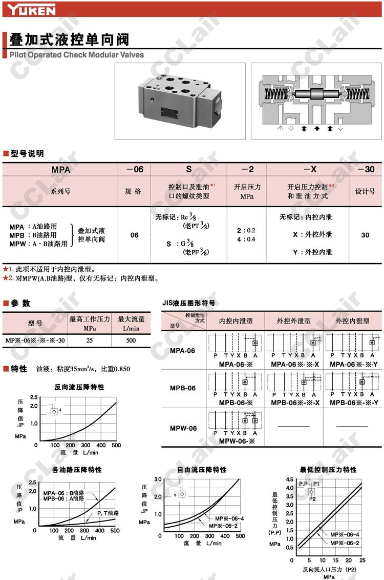 MPA-06,MPB-06,MPW-06,MPA-06-S-2-X-30,MPW-06-S-2-30,MPB-06-S-2-30,YUKEN,疊加式液控單向閥