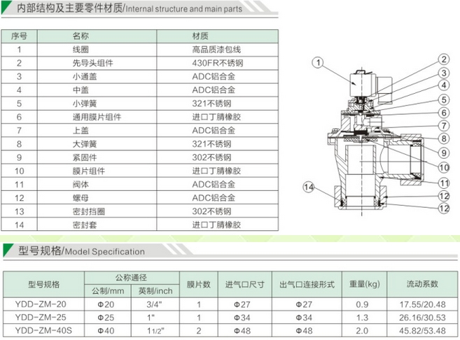 詳細信息 YDD-ZM-20,YDD-ZM-25,YDD-ZM-40S,電磁脈沖閥