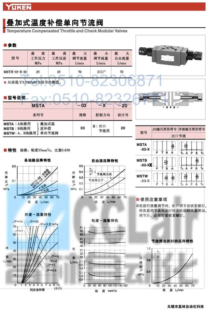 MSTA-03-X-20,MSTB-03-X-20,MSTW-03-X-20,疊加式溫度補(bǔ)償單向節(jié)流閥,榆次油研YUKEN疊加式溫度補(bǔ)償單向節(jié)流閥