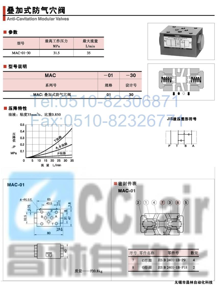 MAC-01-30,疊加式防氣穴閥,榆次油研疊加式防氣穴閥,YUKEN疊加式防氣穴閥