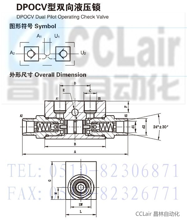 DPOCV-1/4-12L,DPOCV-3/8-12L,DPOCV-3/8-15L,DPOCV-1/2-15L,DPOCV-1/2-18L,雙向液壓鎖