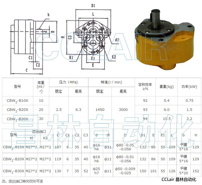 CBW2-B10X,CBW2-B20X,CBW2-B30X,雙向齒輪泵