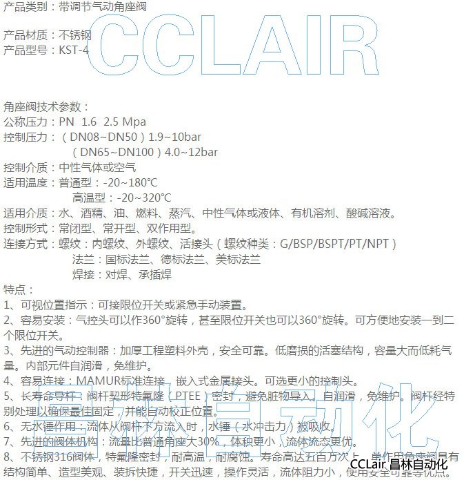 詳細(xì)信息 KST-4,2000Y型帶調(diào)節(jié)氣動(dòng)角座閥