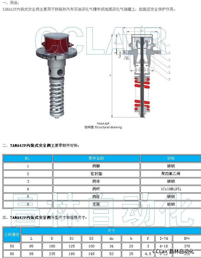 TANA42F-DN50,TANA42F-DN80,內(nèi)裝式安全閥