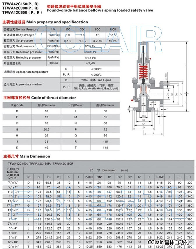 TFWA42C150P,TFWA42C150R,TFWA42C300P,TFWA42C300R,波紋管平衡式彈簧安全閥