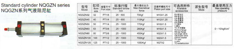 詳細(xì)信息 NQGZN32,NQGZN40,NQGZN50,NQGZN63,NQGZN80,NQGZN100,NQGZN125,氣液阻尼缸