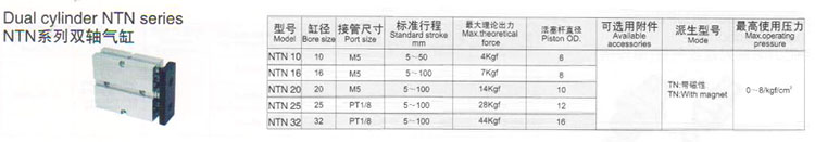 詳細信息 NTN10,NTN16,NTN20,NTN25,NTN32,雙軸氣缸