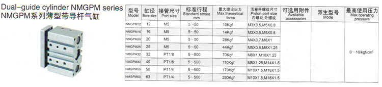 詳細信息 NMGPM12,NMGPM16,NMGPM20,NMGPM25,NMGPM32,NMGPM40,NMGPM50,NMGPM63,薄型帶導(dǎo)桿氣缸