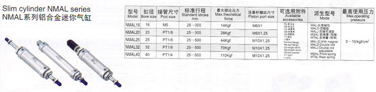 NMAL16,NMAL20,NMAL25,NMAL32,NMAL40,鋁合金迷你氣缸