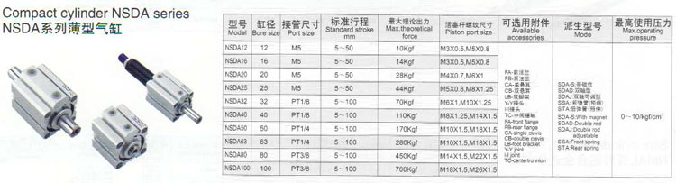 NSDA12,NSDA16,NSDA20,NSDA25,NSDA32,NSDA40,NSDA50,NSDA63,NSDA80,NSDA100,薄型氣缸