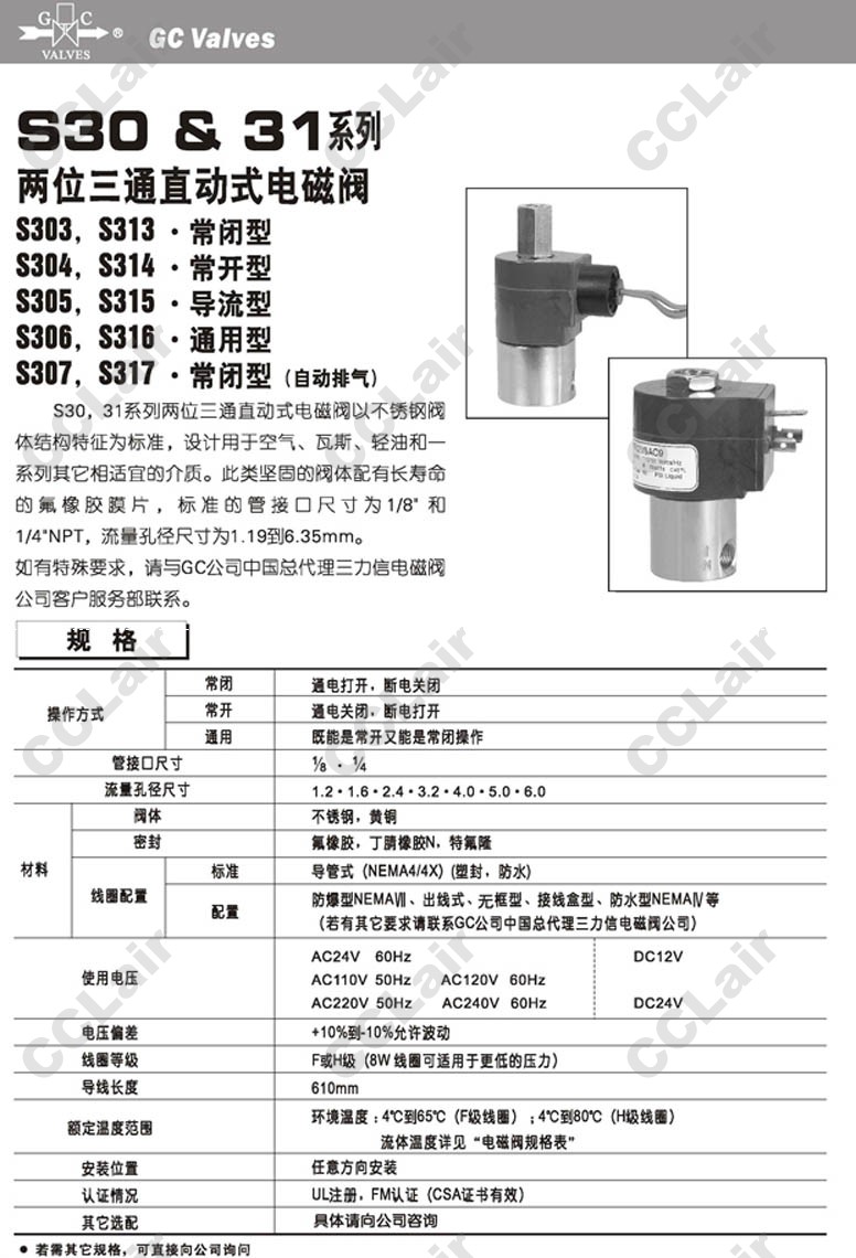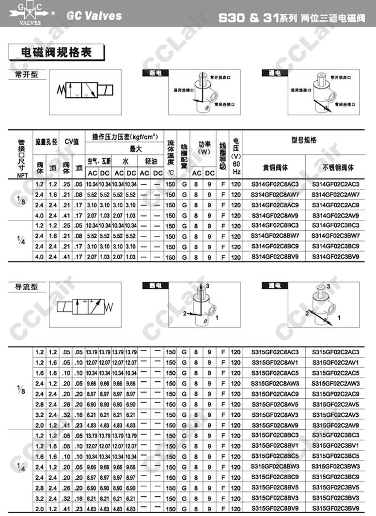 S313GF02C2AC5,S313GF02C2AW3,S313GF02C2AV3,GC Valves S313GF02C2BC3,S313GF02C2BV1,S313GF02C2BC5,