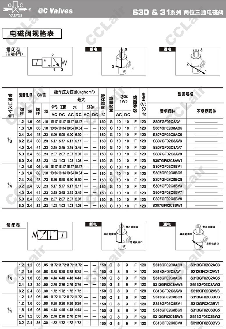 S303GF02C2AV7,S303GF02C2AV9,S303GF02C2AW1,GC Valves S303GF02C2BV1,S303GF02C2BC5,S303GF02C2BC9,