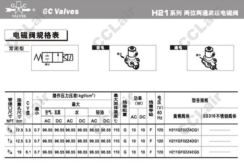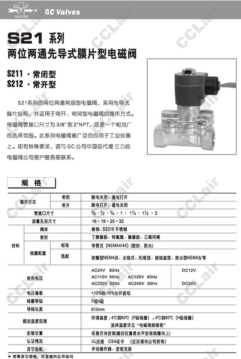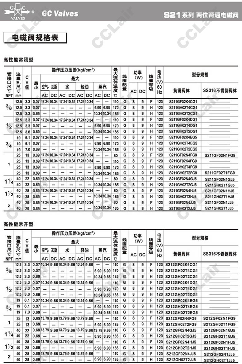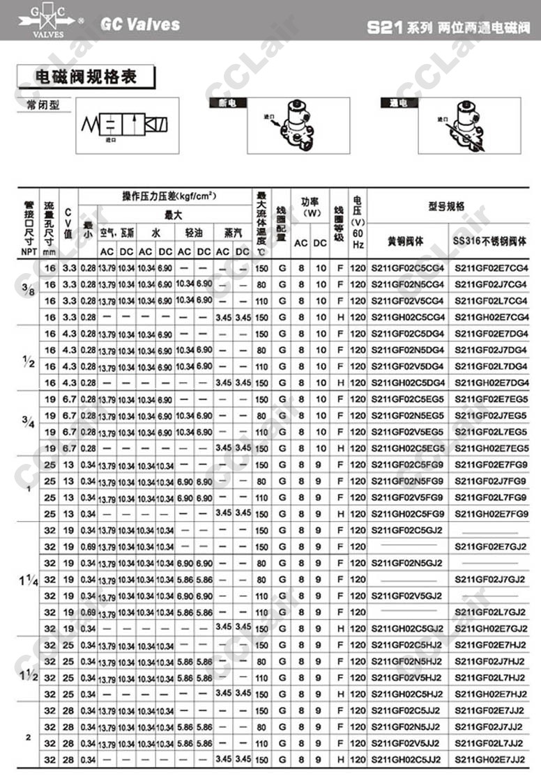 S211GF02C5FG9,GC Valves S211GF02N5FG9,S211GF02V5FG9,S211GH02C5FG9,S211GF02C5GJ2,S211GF02N5GJ2,
