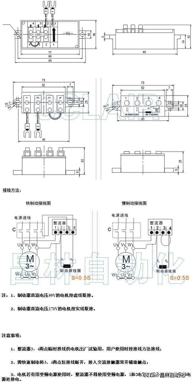 2、制動器直流電壓170V的電機按實線聯(lián)接。