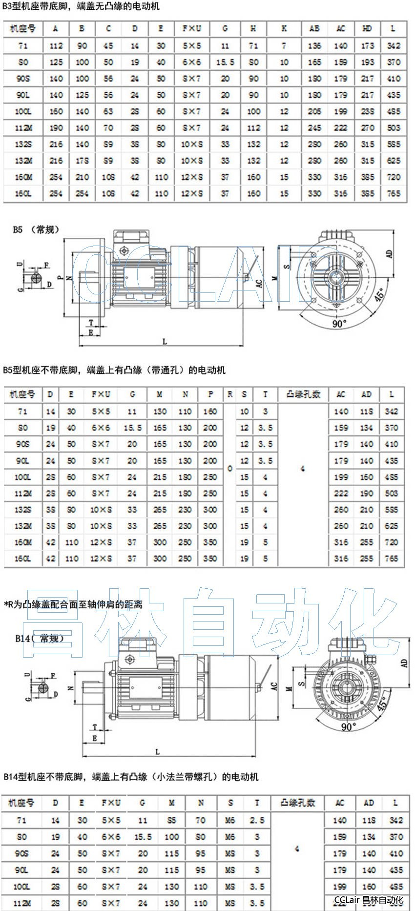 10、機座號71~112電機為鋁合金外殼,接線盒在頂部;座號132~160電機為鑄鐵外殼,接線盒在右邊,如有要求可放在頂部。