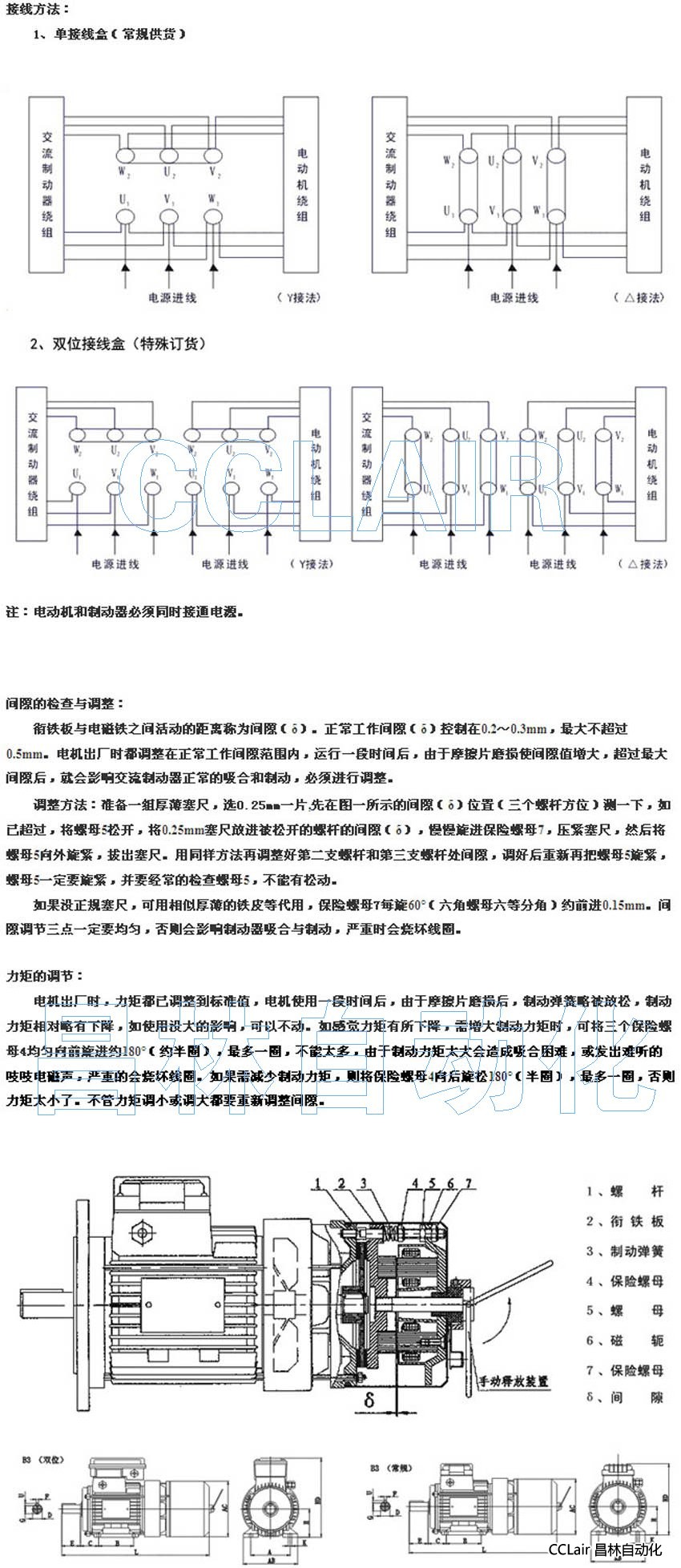 5、交流制動器使用電壓、接法與電動機完全一致,避免中間交直流轉(zhuǎn)換,使用方便;