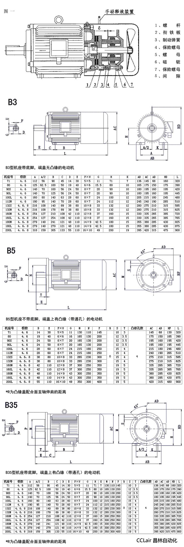 3、電機(jī)絕緣等級(jí)為B、F級(jí),制動(dòng)器為F級(jí);