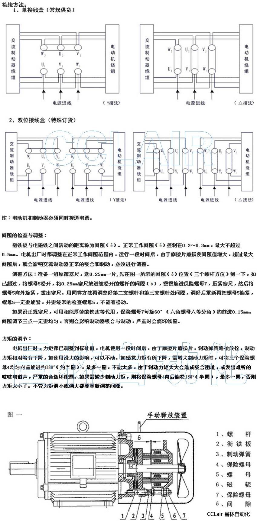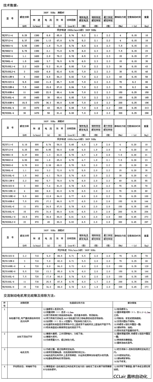 2、額定電壓380V 50Hz(交流制動(dòng)器與電動(dòng)機(jī)相同);