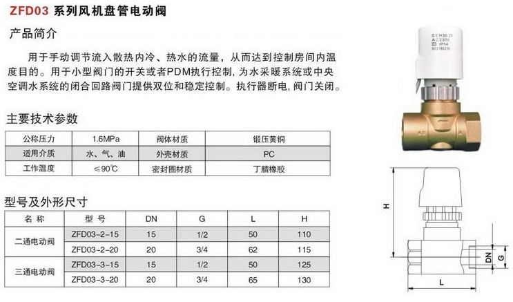 ZFD03-2-15,ZFD03-2-20,ZFD03-3-15,ZFD03-3-20,風(fēng)機(jī)盤管電動閥