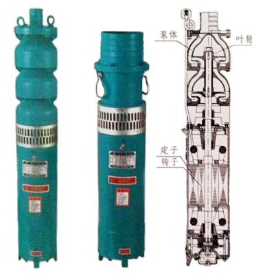 QS型潛水泵由水泵、電機(jī)兩大部分組成,水泵位于電泵上部,為離心式結(jié)構(gòu)。電動機(jī)位于電泵下部,為充水式三相異步電動機(jī)。充水式電動機(jī)定子繞組和鐵心直接浸在水中,冷卻效果好,不產(chǎn)生污染,從而突破了其他電泵工作時“O"形密封圈,機(jī)械密封件等滲水到電機(jī)腔內(nèi)的弊端,大大提高了電泵的使用效率。