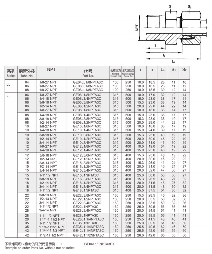 GE10L1/4NPTA3C,GE10L3/8NPTA3C,GE10L1/2NPTA3C,GE10L3/4NPTA3C,